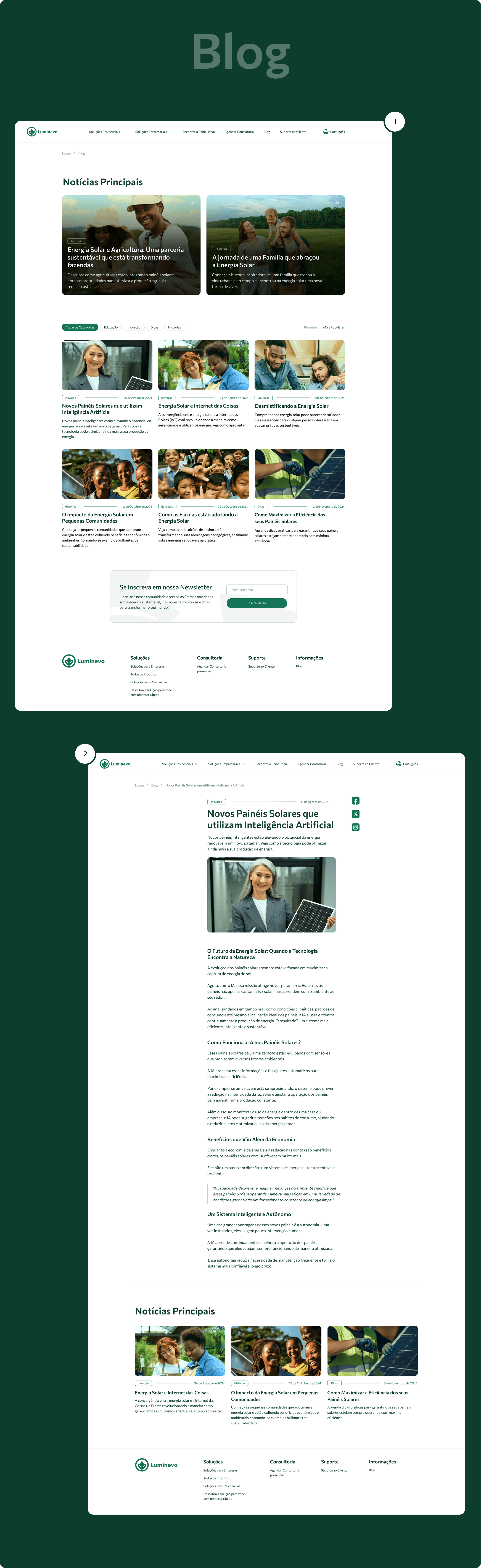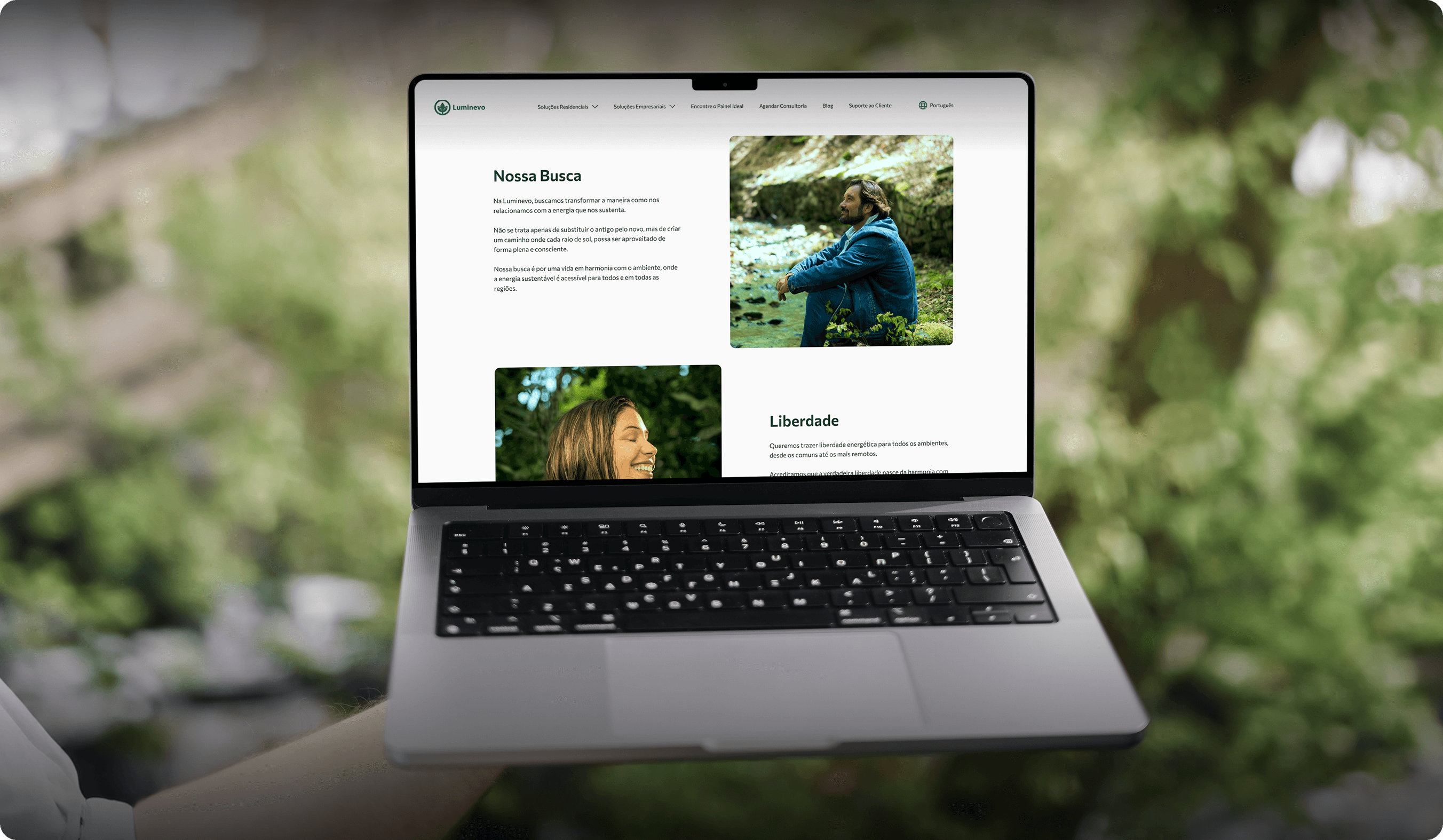 Criação do Website da Luminevo, uma empresa de painéis solares ecológicos, que usam tecnologia avançada em IA para melhorar a eficiência energética dos painéis.